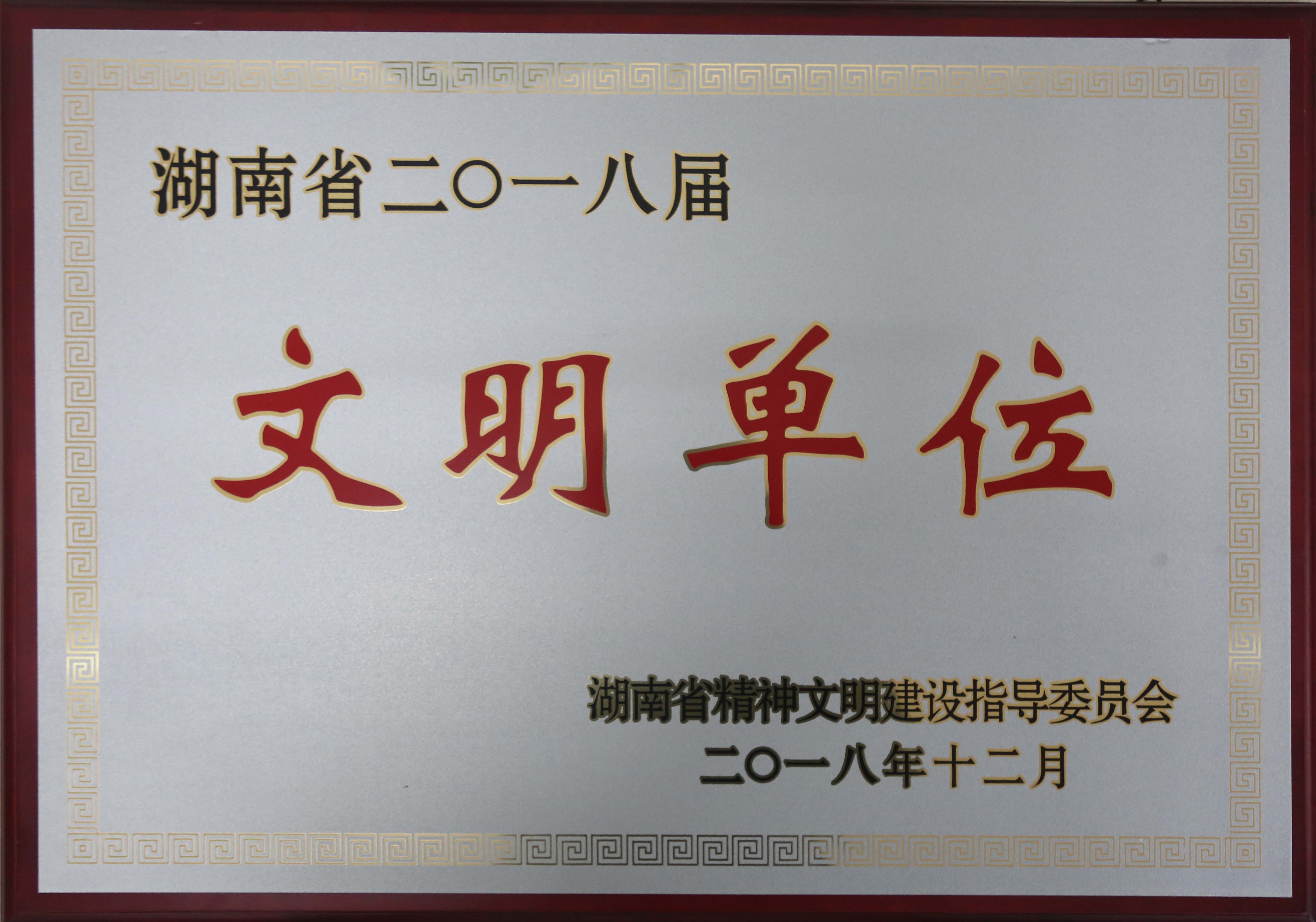 • 2018年12月被湖南省精神文明建設(shè)指導委員會評為“湖南省二〇一八屆文明單位”